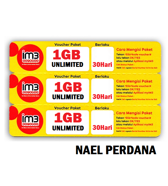 Voucer Indosat kuota utama 1 GB dengan BONUS UNLIMITED APLIKASI. (hanya bisa di gunakan di jabodetabek,sukabumi)